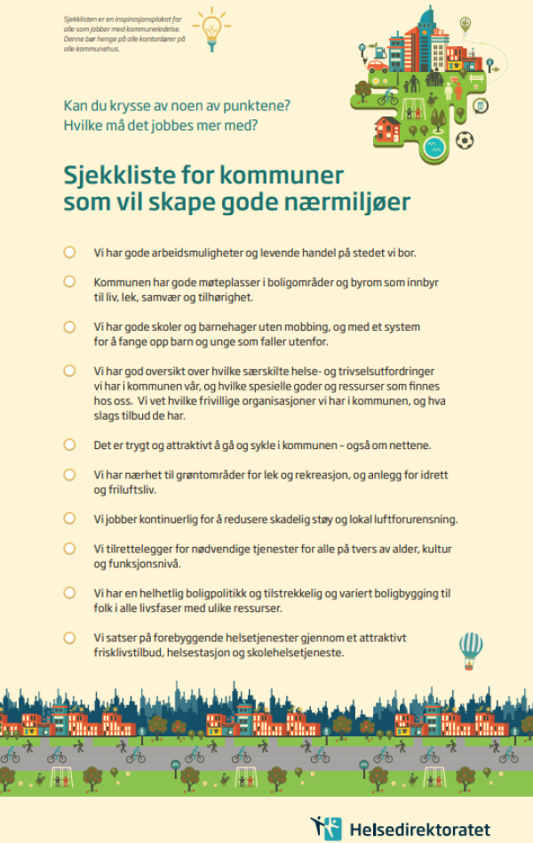 Sjekkliste for kommuner som vil skape gode nærmiljøer