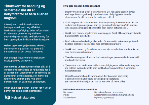 Tiltakskort for handling og samarbeid når du er bekymret for et barn eller en ungdom