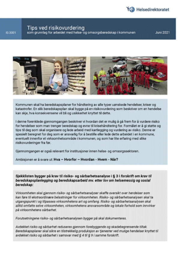 Tips ved risikovurdering som grunnlag for arbeidet med helse- og omsorgsberedskap i kommunen