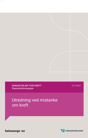 Helsedirektoratet (2015). Utredning ved mistanke om kreft – Pasientinformasjon [nettdokument]. Oslo: Helsedirektoratet (siste faglige endring 01. januar 2015, lest 05. november 2025). Tilgjengelig fra https://helsedir-xpqa-helsedir.enonic.cloud/brosjyrer/utredning-ved-mistanke-om-kreft-pasientinformasjon