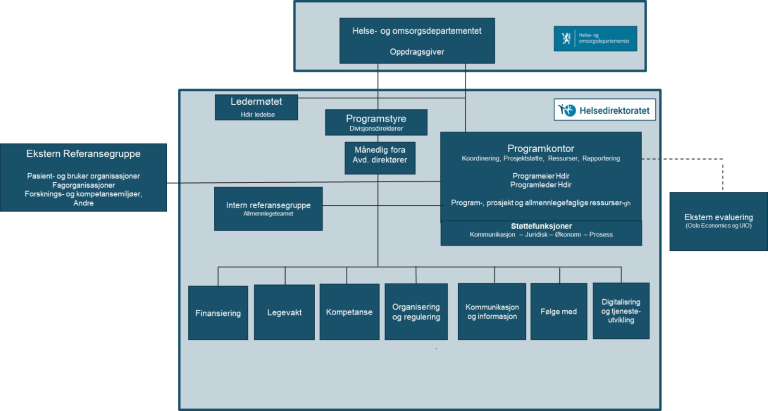 Helsedirektoratet har en sentral rolle i arbeidet med å følge opp regjeringens tiltak for å styrke allmennlegetjenesten. I forbindelse med lanseringen av Handlingsplanen for allmennlegetjenesten i 2020, opprettet Helsedirektoratet et program med et koordinerende programkontor for dette arbeidet.