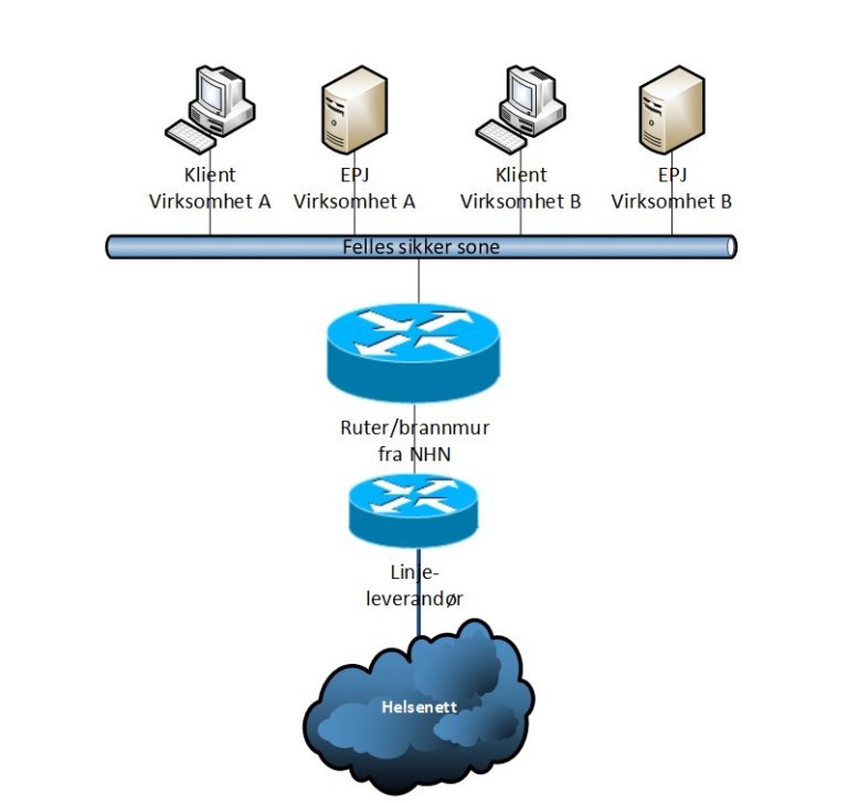 - Virksomheten deler fysisk nett og har felles sikker sone.