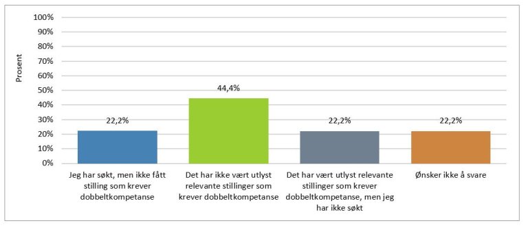De to som ikke har søkt stillinger som krever dobbeltkompetanse, svarer "annet" på spørsmål om årsaker til det. Kommentarer under "annet" kan ses i vedlegg 4, pkt. 30.