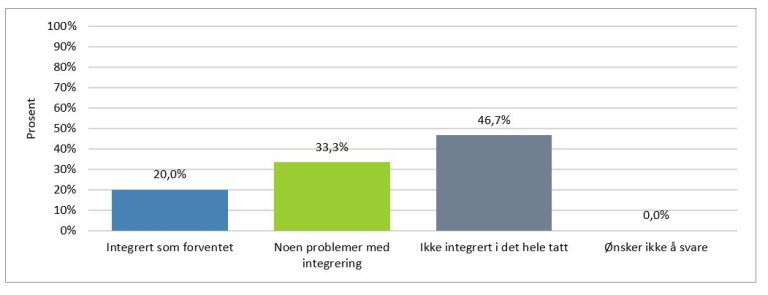 En Questback spørreundersøkelse ble sendt på e-post til alle 41 tannleger som har begynt på integrert DKO siden starten i 2010. 30 av dem svarte, det gir en svarprosent på 73,2.