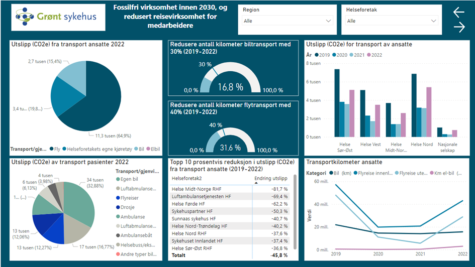 Transport av varer og tjenester og reiser foretatt av ansatte og pasienter utgjør en betydelig del av helsetjenestens klimagassutslipp. Reise- og transportaktivitetene er avgjørende for at helsetjenesten skal fungere effektivt, men har også en påvirkning på klima og miljø.